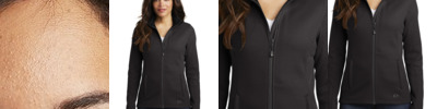 - 100% polyester knit bonded to a water-resistant film insert and a 100% polyester microfleece lining at side panels and under arms