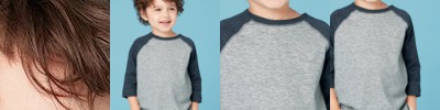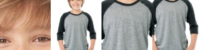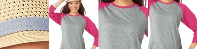 4.8 ounce 50% polyester/50% cotton jersey knit * Crew neck * Contrast color neck and sleeves * Raglan sleeves * Serged fishtail bottom