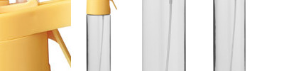 - Screw-on cap with hinged handle and screw-on spout cover